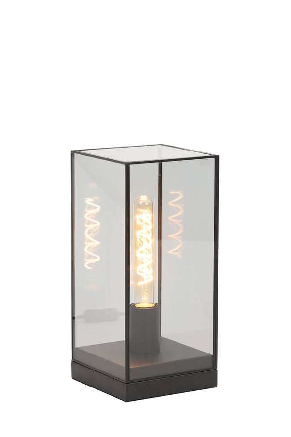 De tafellamp Askjer is een elegante tafellamp gemaakt van hout en glas. Het glas zit in een zwart frame en geeft rondom de lichtbron een sfeervolle uitstraling, omdat je de lichtbron goed kan zien. De tafellamp heeft een hoogte 30 cm en is 15 cm breed. De lamp is voorzien van een E27 fitting van maximaal 40 watt en is geschikt voor LED- spaar- en gloeilampen, maar wij adviseren om in deze lamp een mooie filamant lichtbron te doen om extra sfeer te creëren.